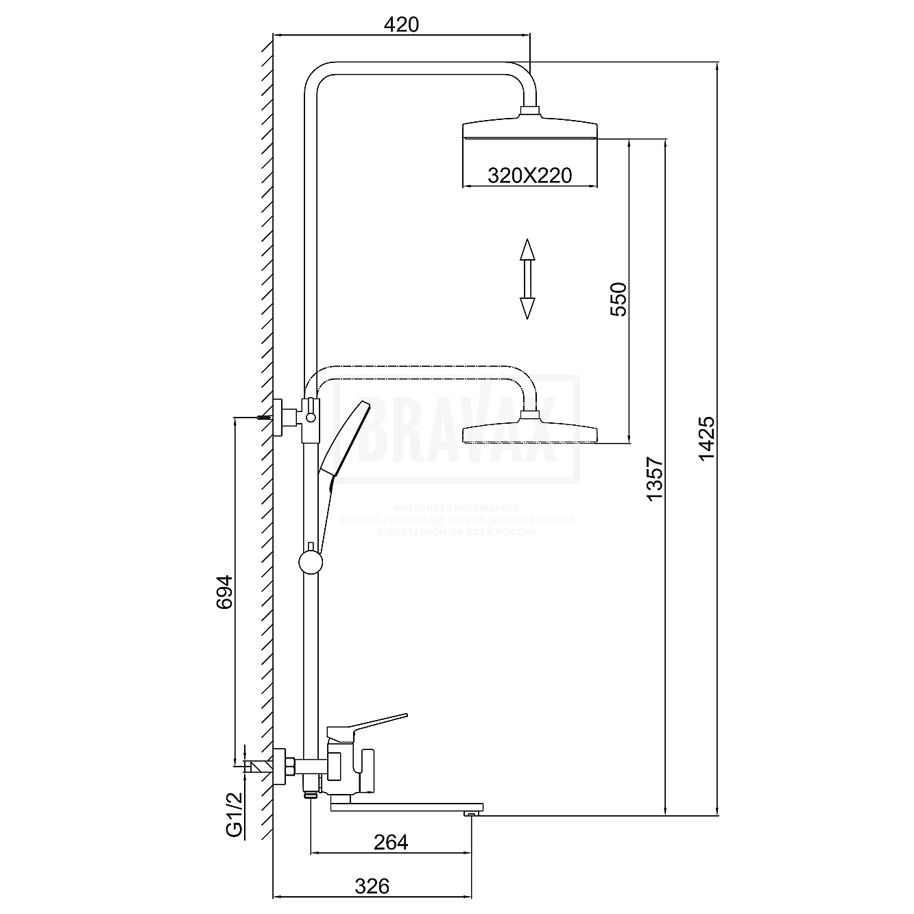 с тропическим душем, с ручным душем, с регулировкой по высоте -