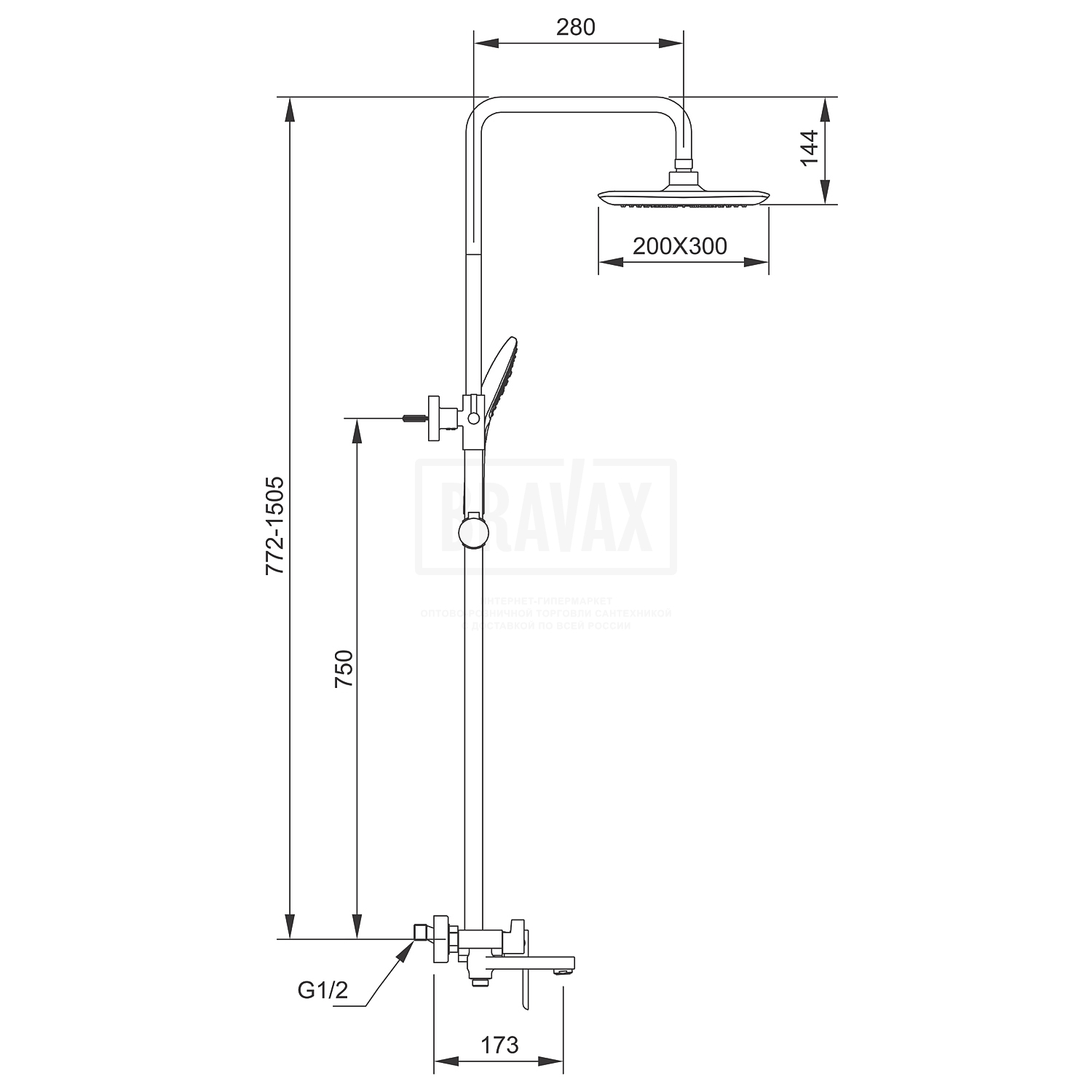 с тропическим душем, с ручным душем, с регулировкой по высоте -