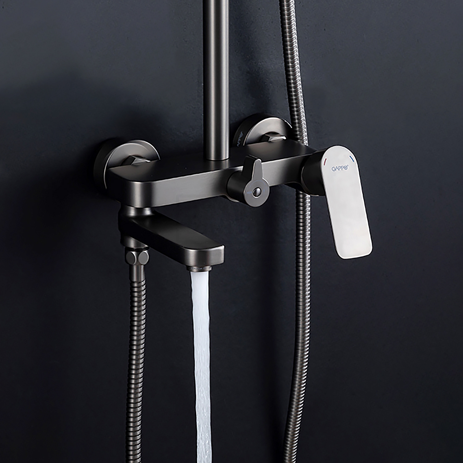 Состав комплектас душевой лейкой, с шлангом для душа, верхний душ, душевая стойка, смеситель