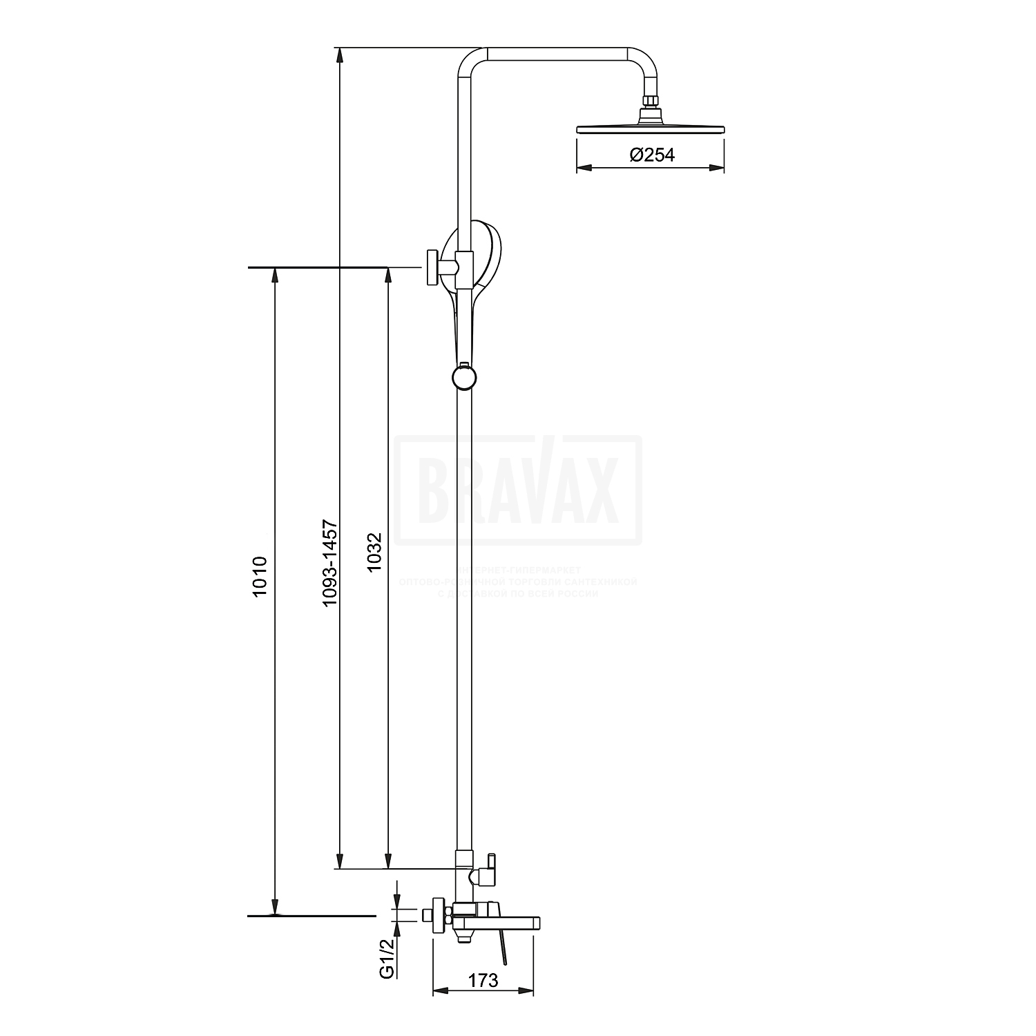 Размер верхнего душа25.4