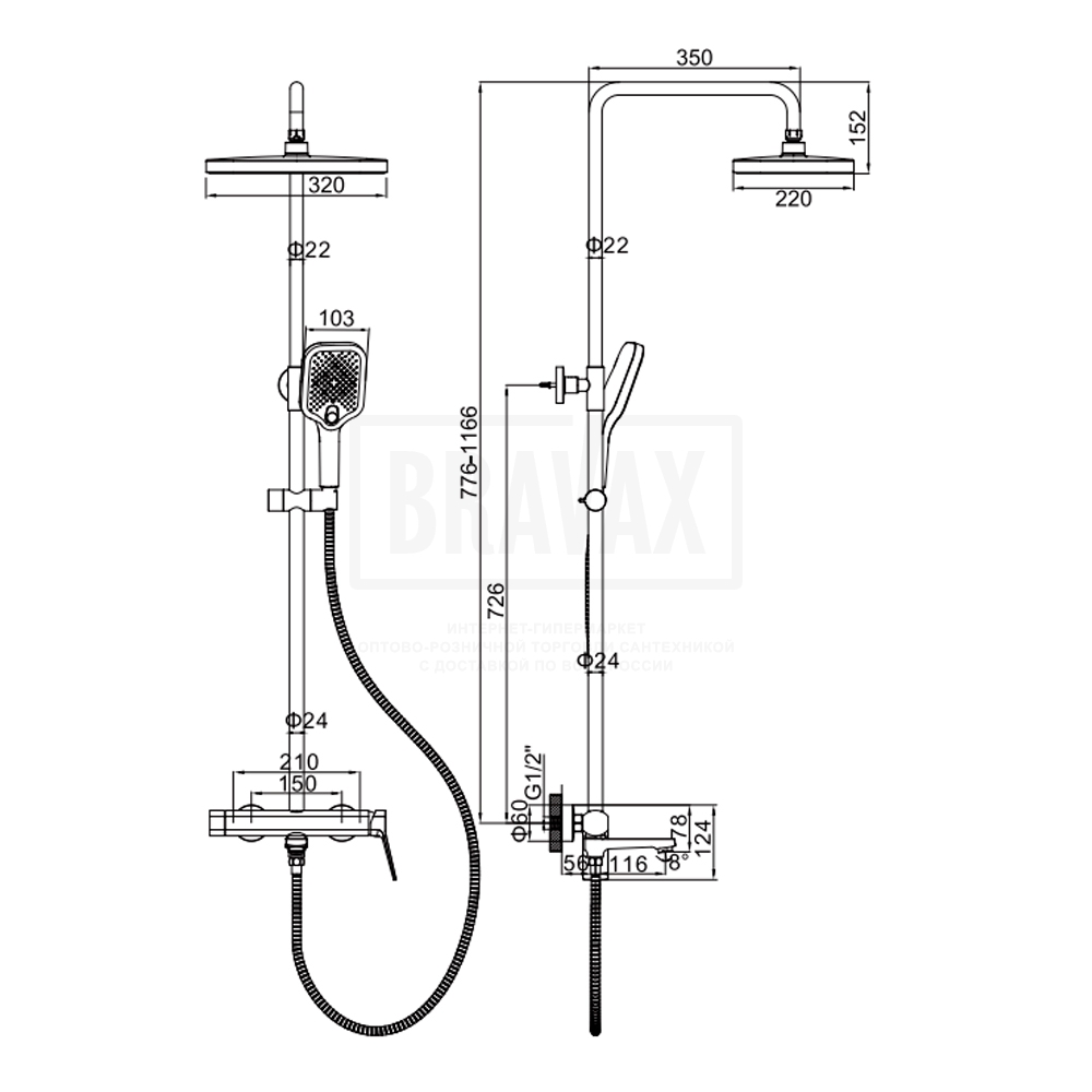 Состав комплектас душевой лейкой, с шлангом для душа, верхний душ, душевая стойка, смеситель