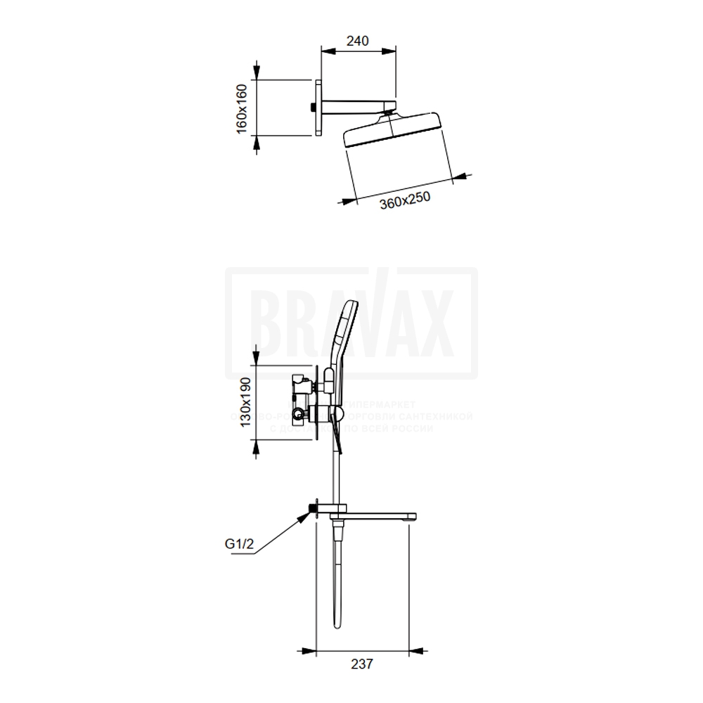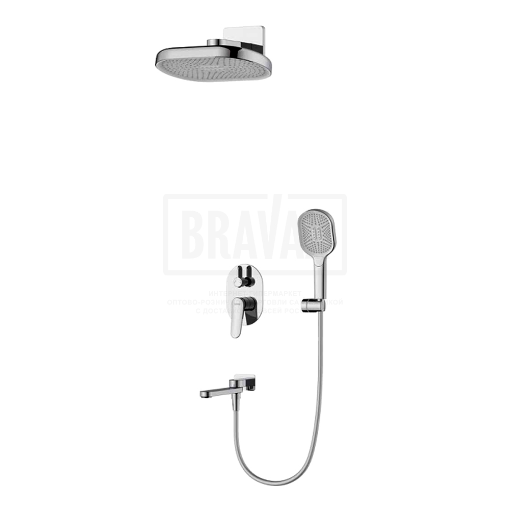 Состав комплектас душевой лейкой, с шлангом для душа, с кронштейном, верхний душ, внутренняя часть смесителя, излив, с настенным держателем, смеситель