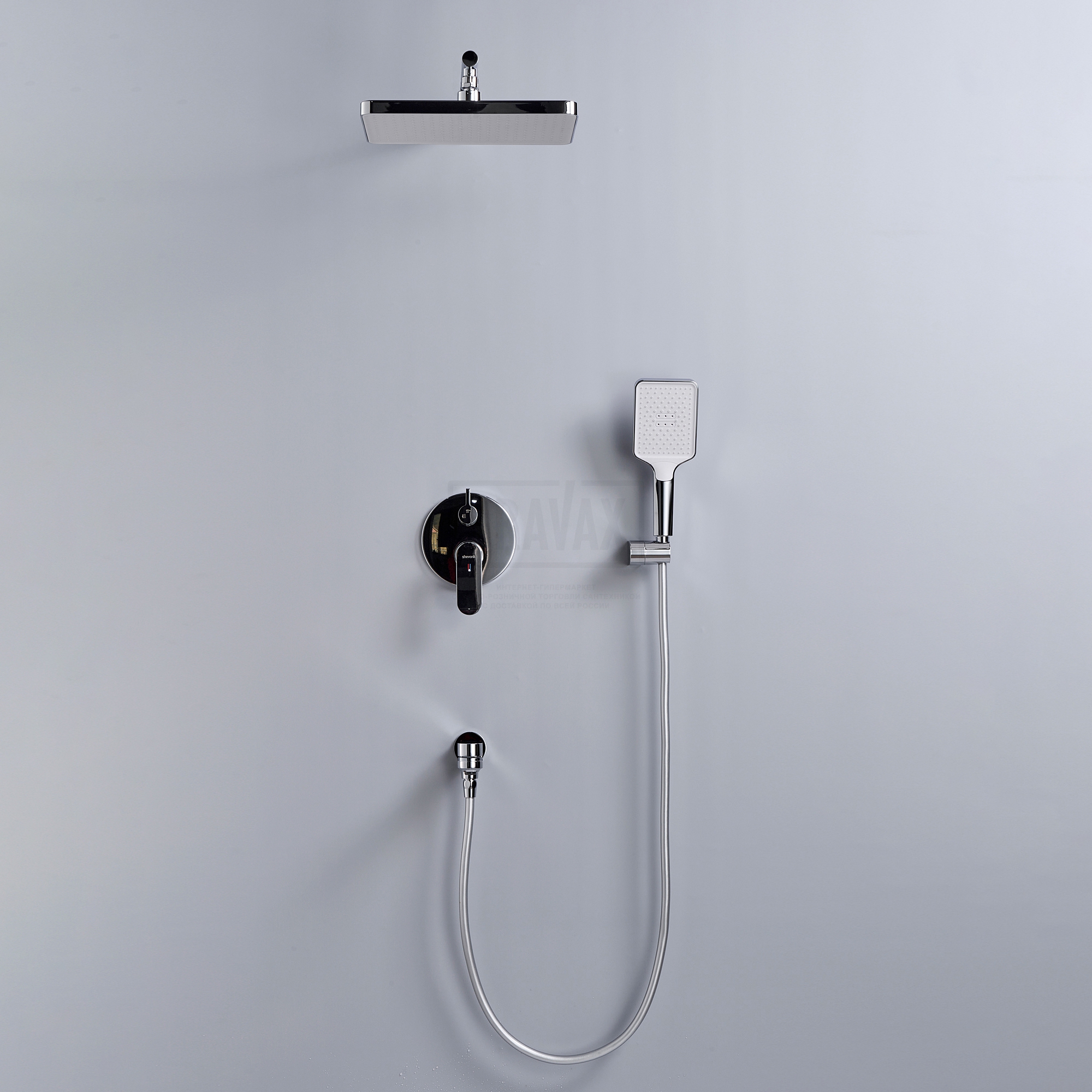 Состав комплектас душевой лейкой, с шлангом для душа, с кронштейном, верхний душ, внутренняя часть смесителя, излив, с настенным держателем, смеситель, шланговое подключение