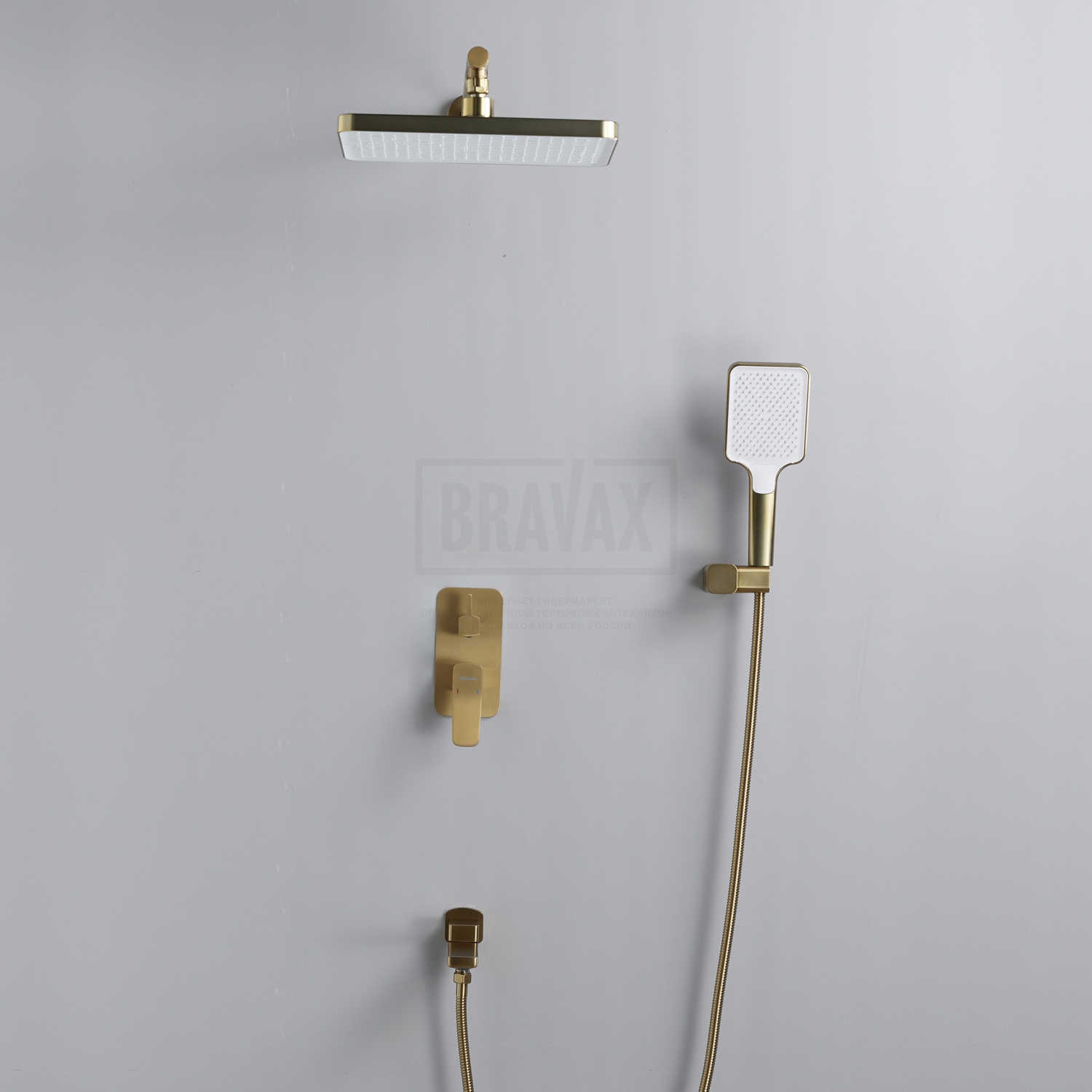 Состав комплектас душевой лейкой, с шлангом для душа, с кронштейном, верхний душ, внутренняя часть смесителя, излив, с настенным держателем, смеситель