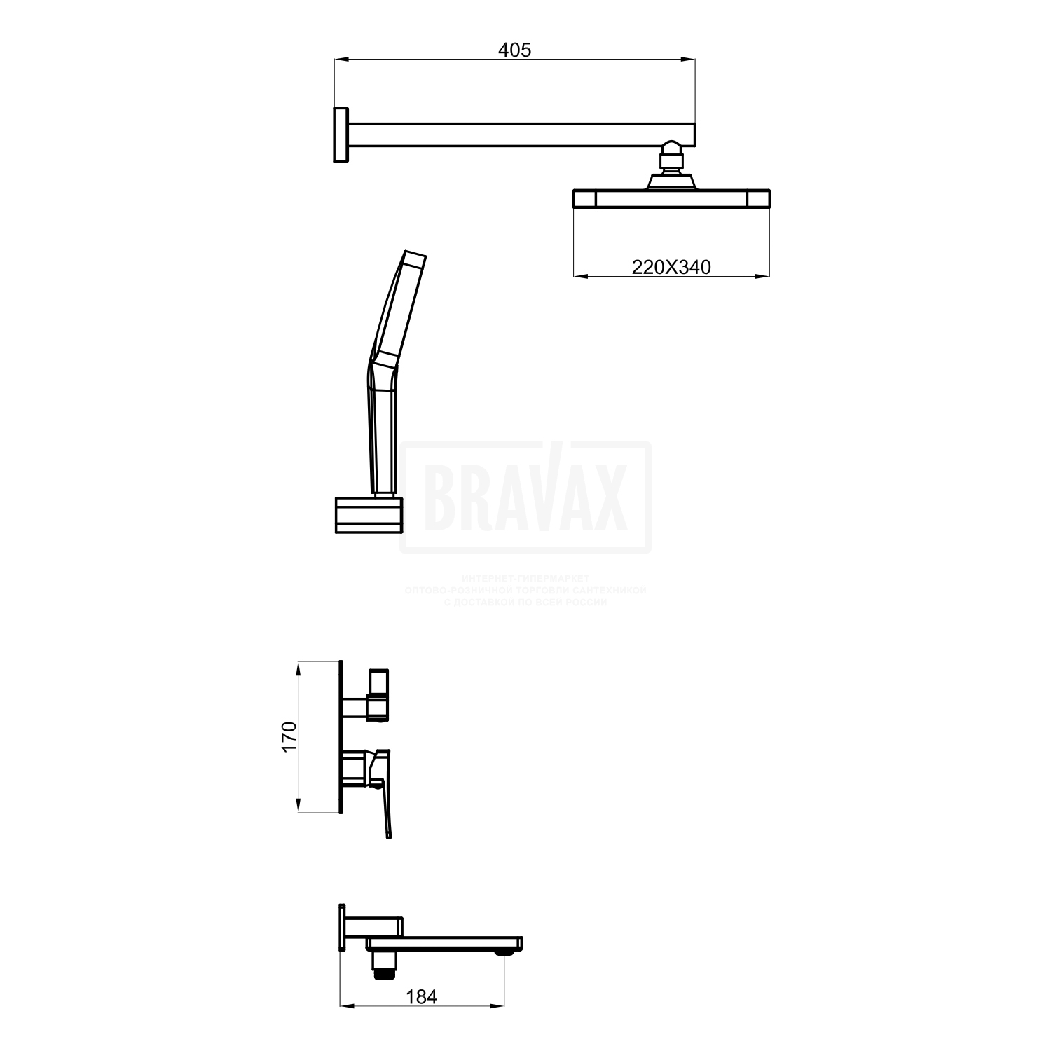 Форма верхнего душапрямоугольная