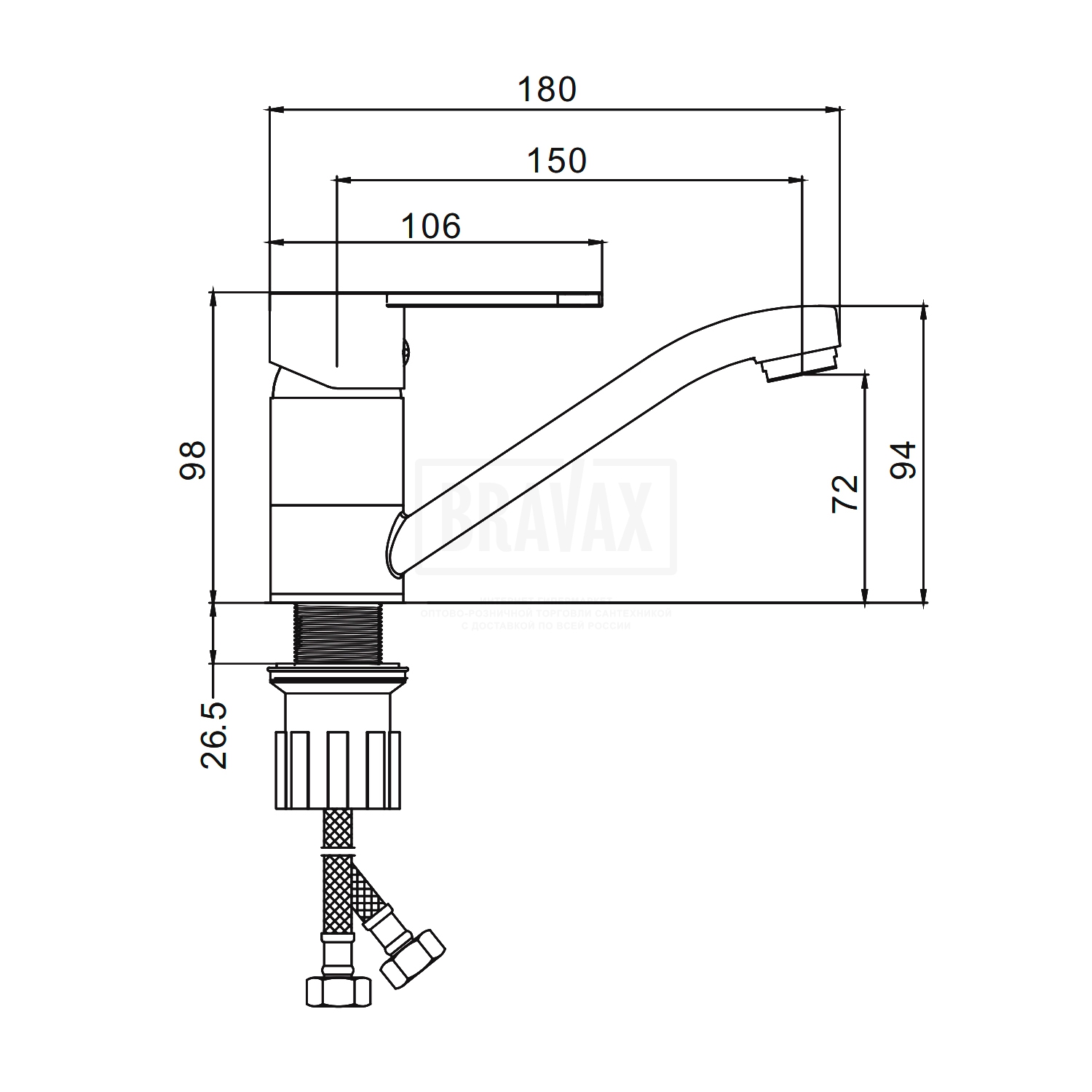В комплектеГибкая подводка 1/2