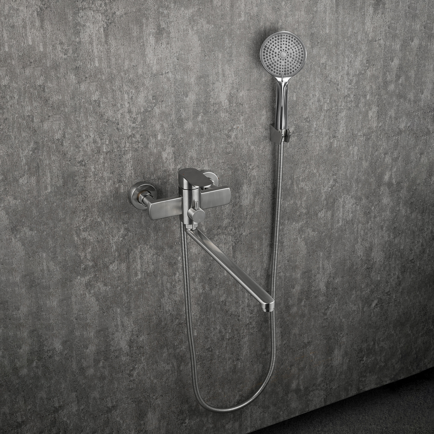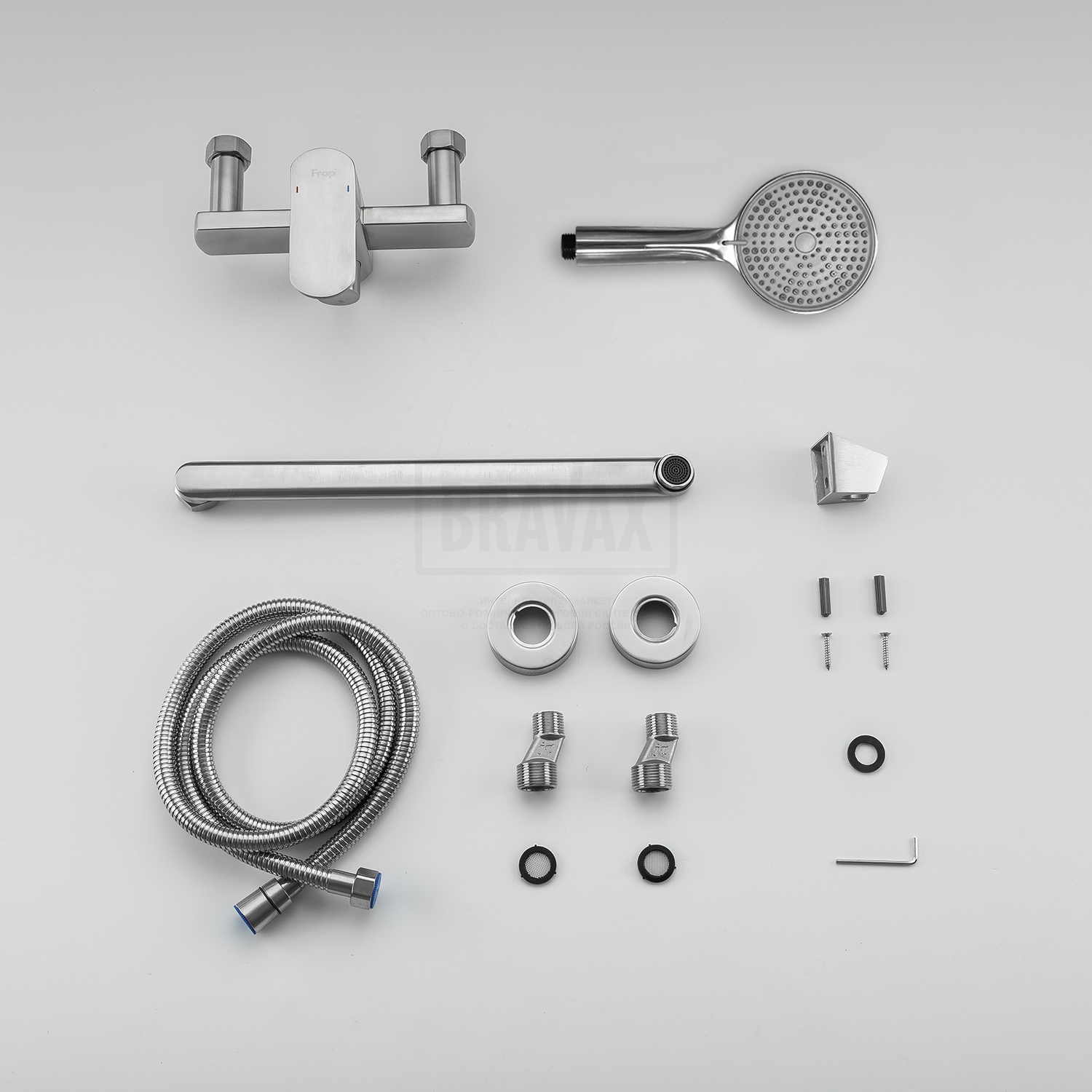 В комплектедушевой шланг 150 см, душевая лейка, держатель лейки, комплект отражателей, комплект эксцентриков