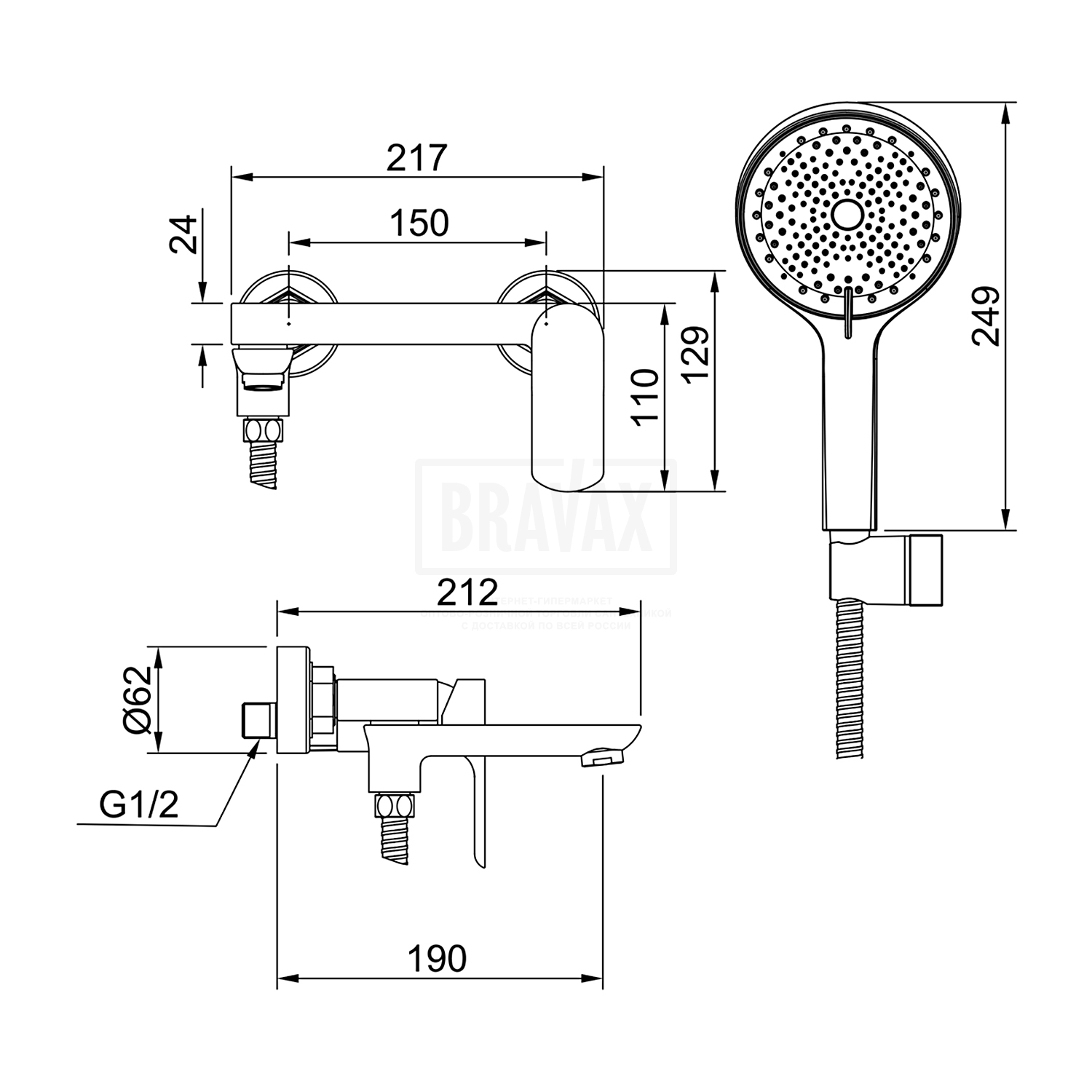 В комплектедушевая лейка, держатель лейки, душевой шланг 150 см, комплект эксцентриков, комплект отражателей