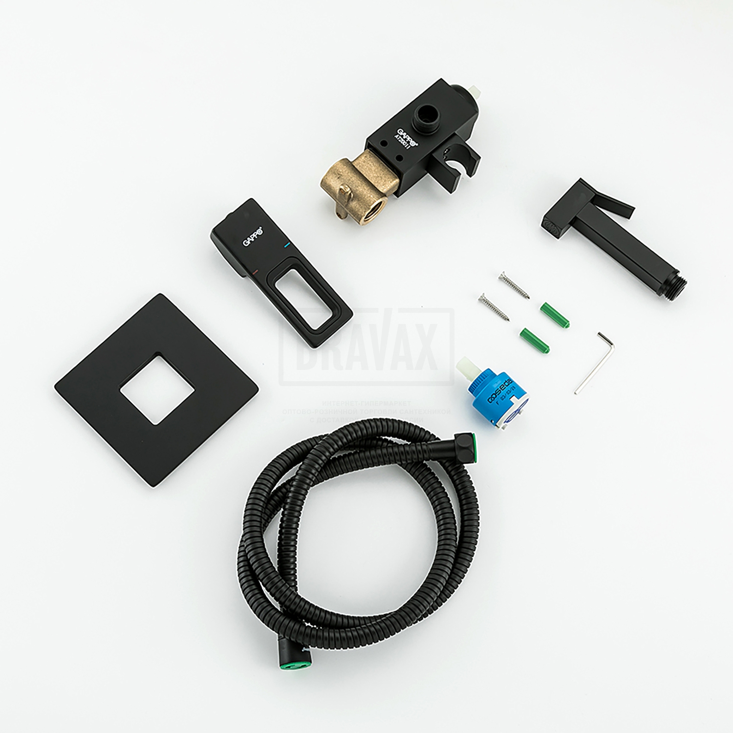 В комплектеДушевой шланг 120 см, с гигиеническим душем, держатель лейки, комплект отражателей, комплект эксцентриков