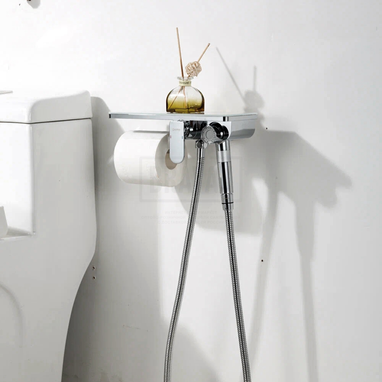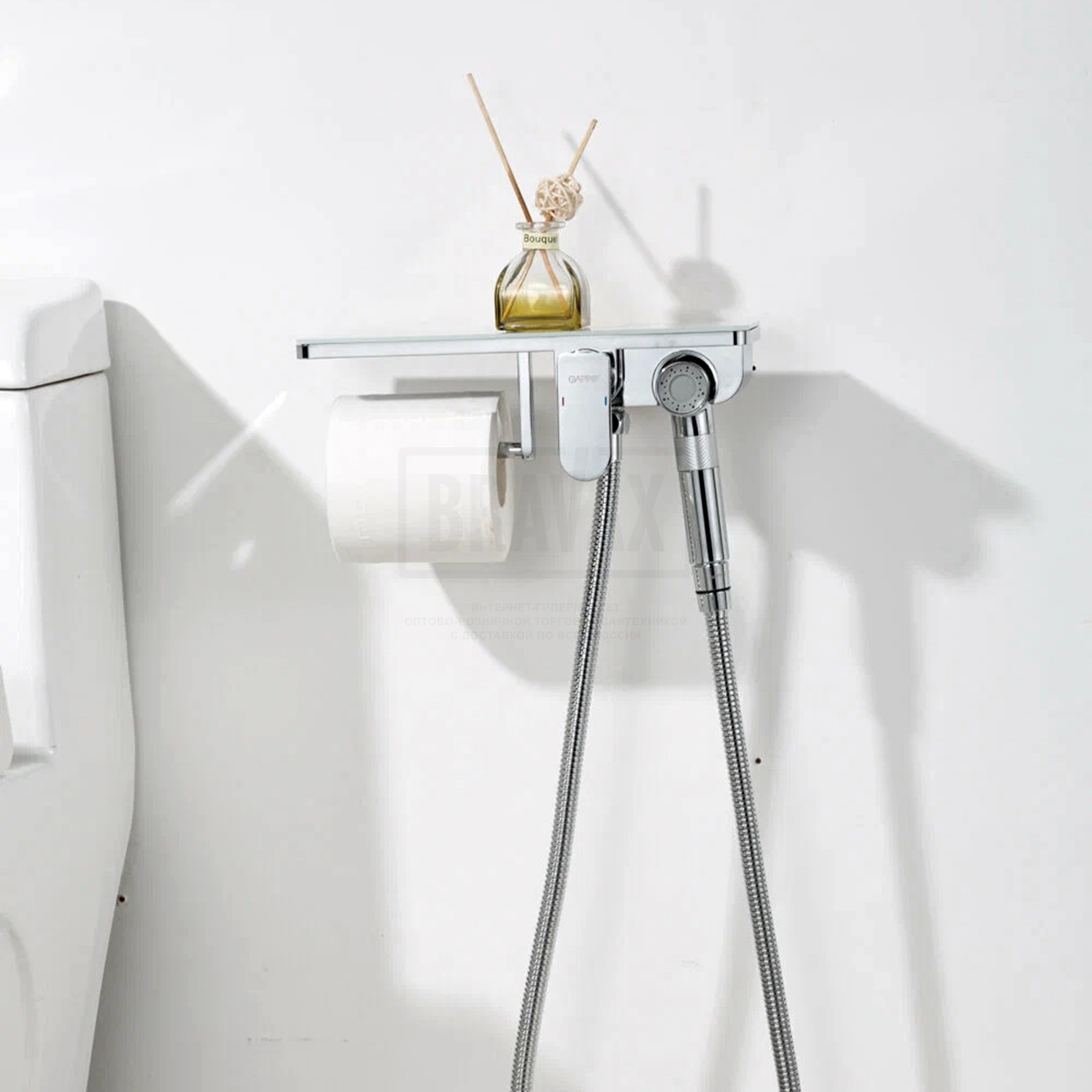 В комплектеДушевой шланг 120 см, с гигиеническим душем, держатель лейки