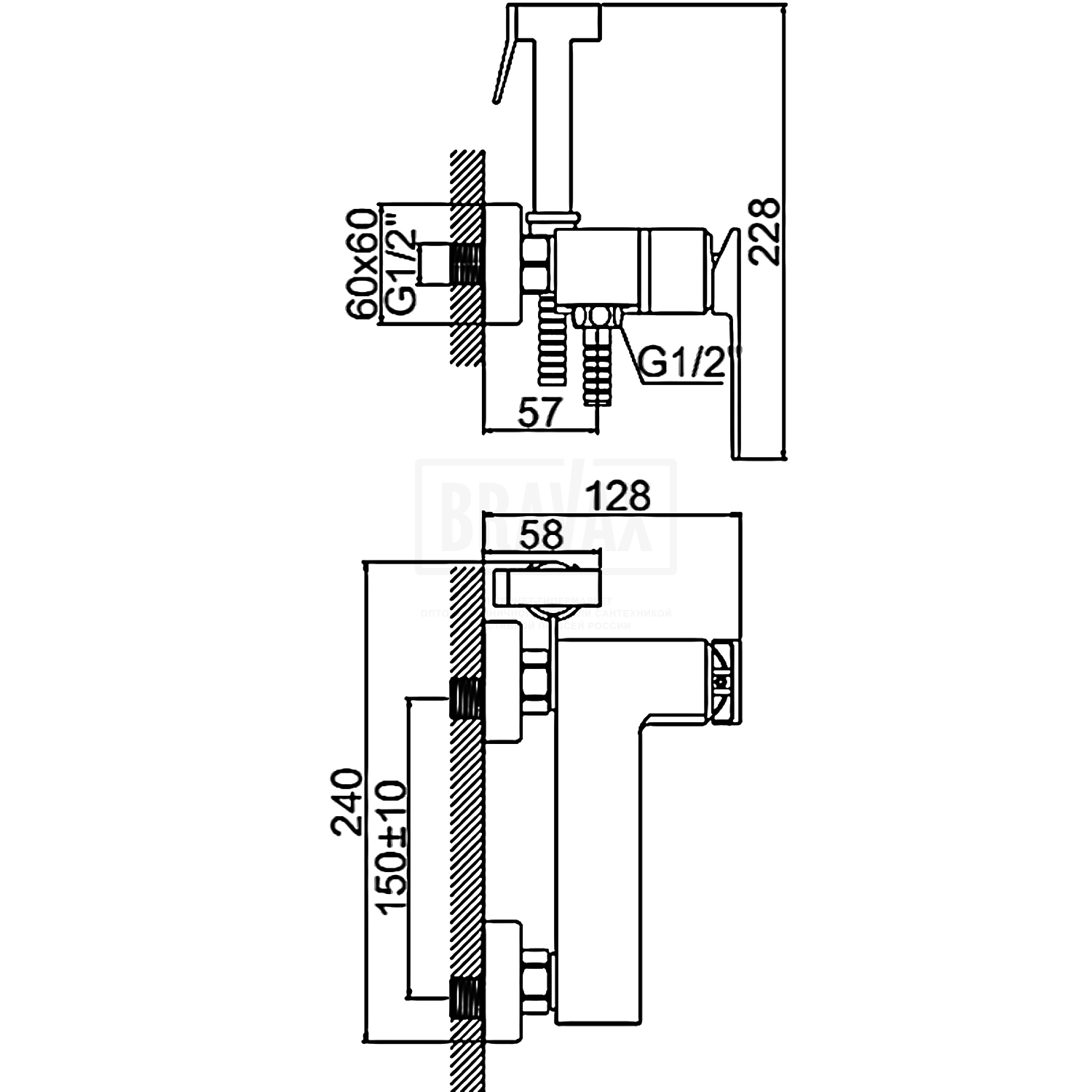 В комплектеДушевой шланг 120 см, с гигиеническим душем, держатель лейки, комплект отражателей, комплект эксцентриков