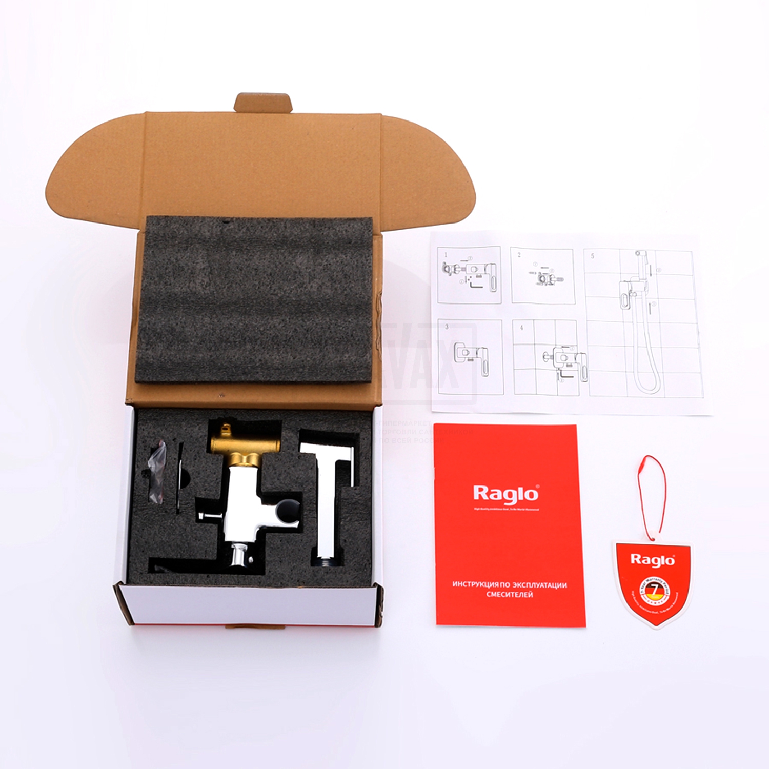 В комплектес гигиеническим душем, держатель лейки, Душевой шланг 120 см, комплект эксцентриков, комплект отражателей