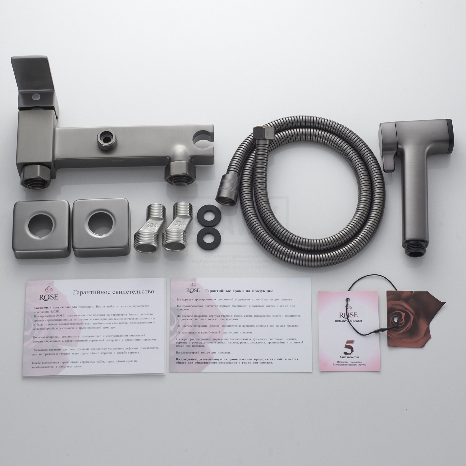 В комплектеДушевой шланг 120 см, с гигиеническим душем, держатель лейки, комплект отражателей, комплект эксцентриков