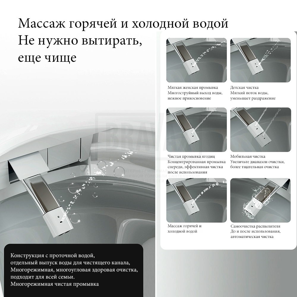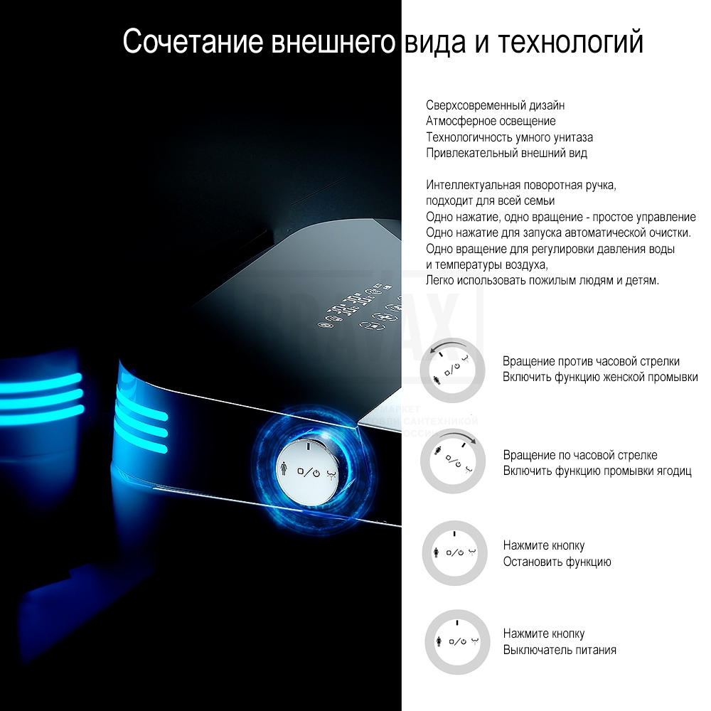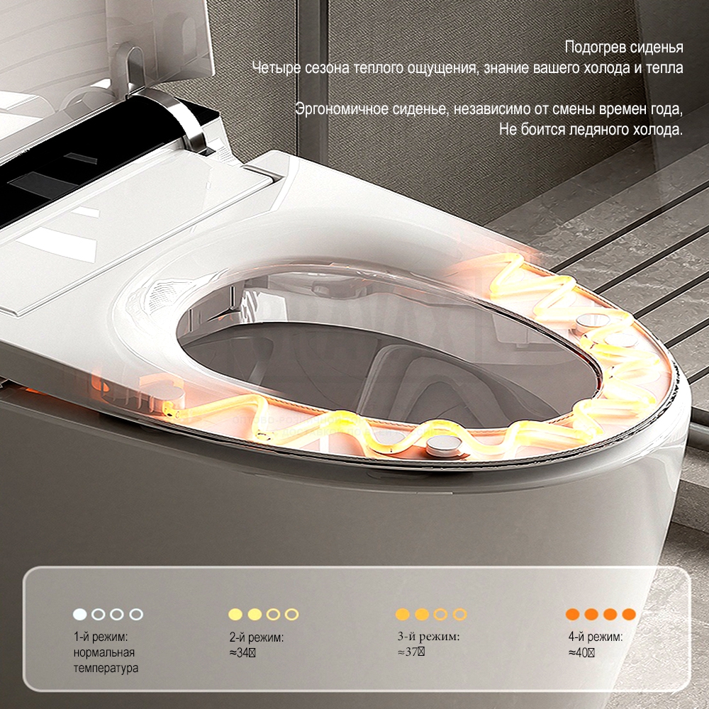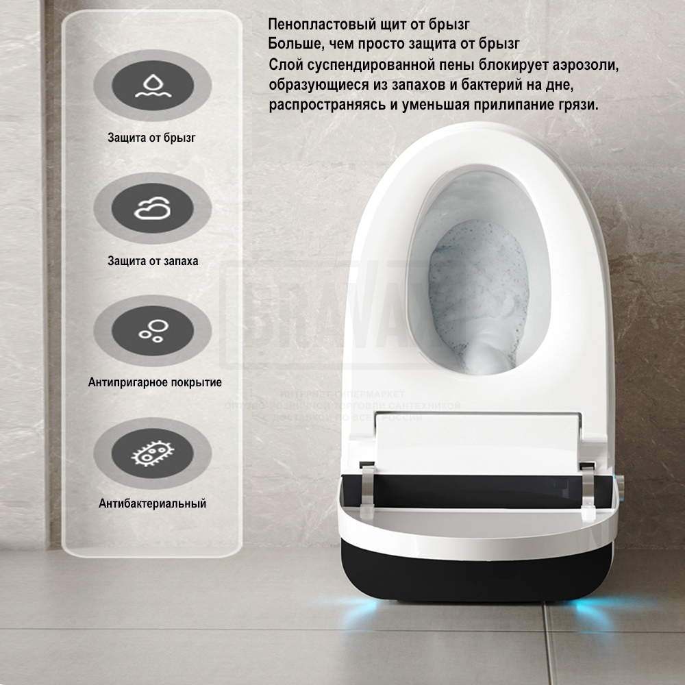 Дополнительные функцииавтоматическое открывание крышки-сидения, антибактериальное покрытие, антигрязевое покрытие, водоотталкивающее покрытие, дезодорирование, маятниковый режим движения штуцера, настройка личных профилей, настройка положения штуцера, настройка режимов биде, подогрев воды, подсветка, регулировка напора воды в биде, регулировка температуры воды биде, регулировка температуры нагрева сидения, регулировка температуры фена, самоочищающийся стержень для гигиенического омывания, сушка, термостат, удаление запахов, фильтрация воздуха в помещении, экономия воды, электронная крышка-биде