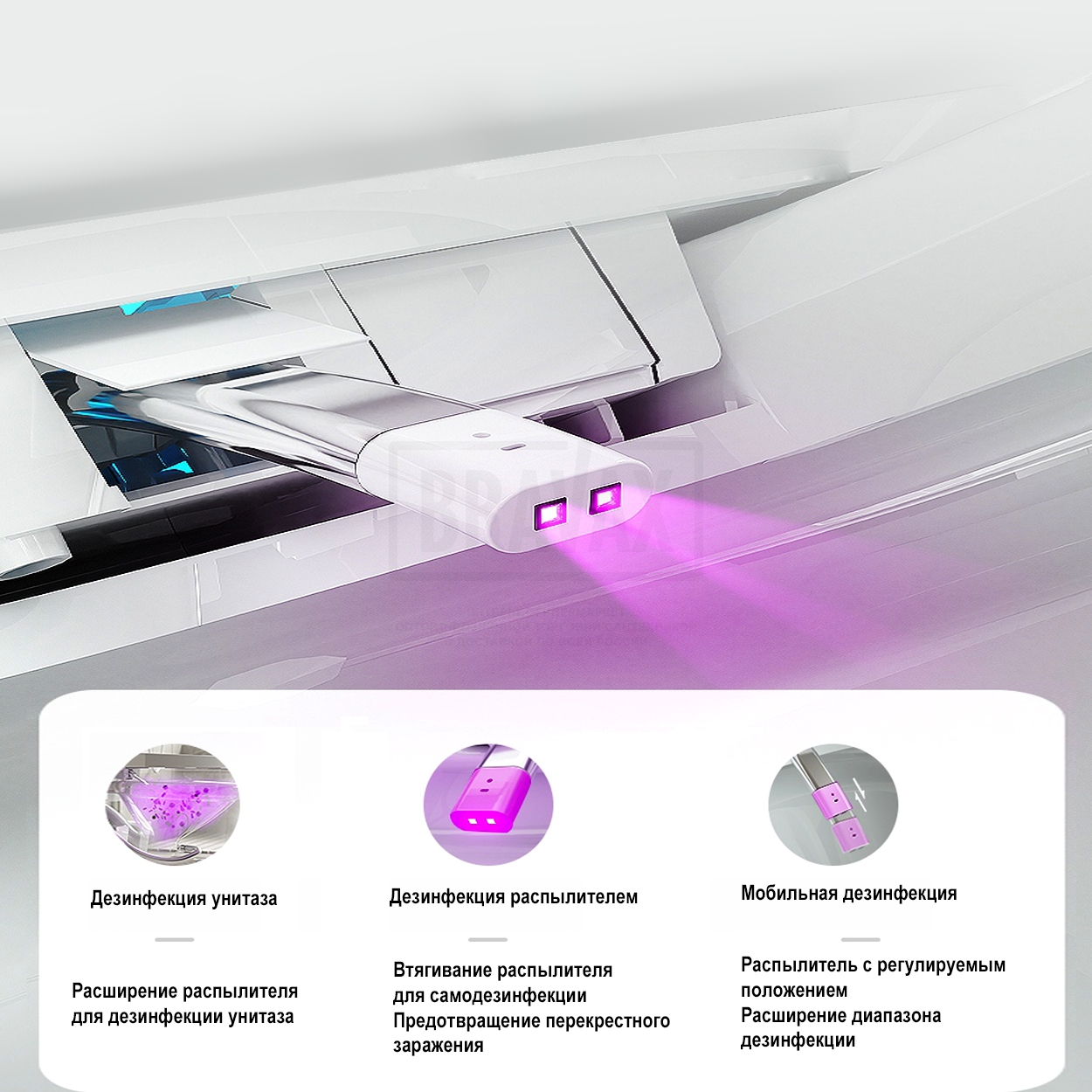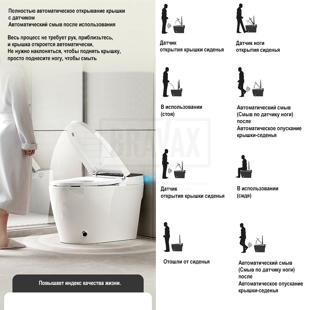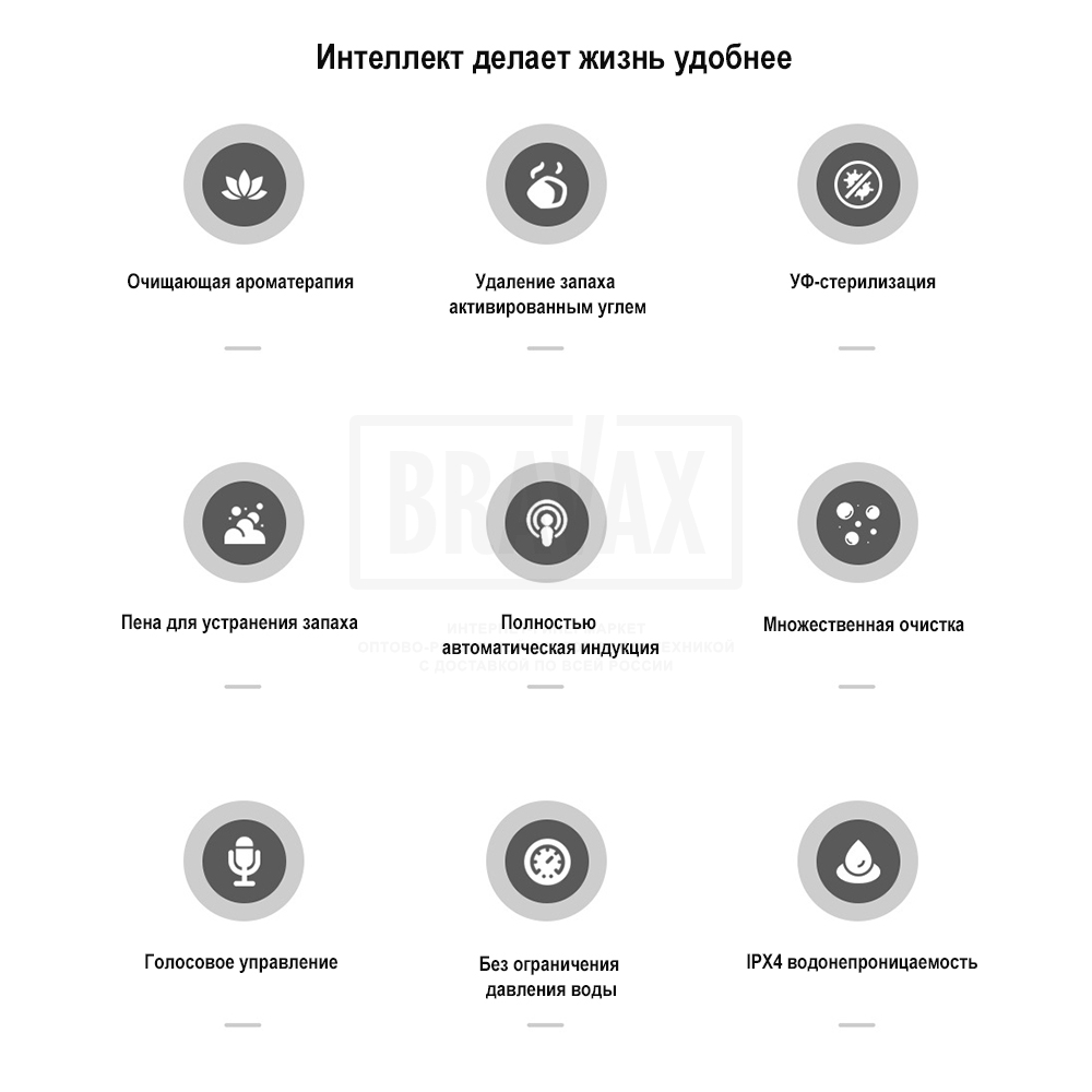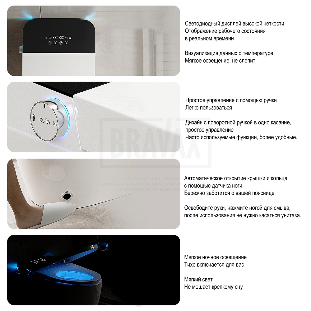 Дополнительные функцииавтоматическое открывание крышки-сидения, антибактериальное покрытие, антигрязевое покрытие, водоотталкивающее покрытие, дезодорирование, маятниковый режим движения штуцера, настройка личных профилей, настройка положения штуцера, настройка режимов биде, подогрев воды, подсветка, регулировка напора воды в биде, регулировка температуры воды биде, регулировка температуры нагрева сидения, регулировка температуры фена, самоочищающийся стержень для гигиенического омывания, сушка, термостат, удаление запахов, фильтрация воздуха в помещении, экономия воды, электронная крышка-биде