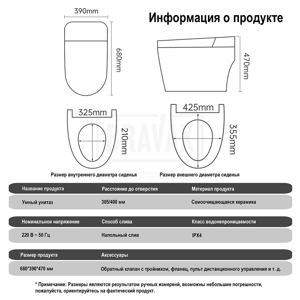 Оснащениеводонагреватель, звукоизолирующая прокладка, кнопка смыва, крепления, пульт ДУ, сенсор, смывной бачок, фен