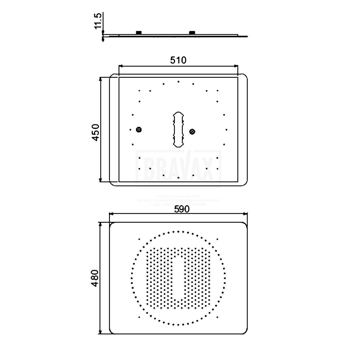 Форма верхнего душапрямоугольная